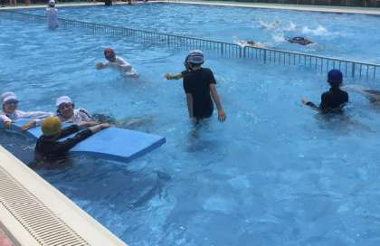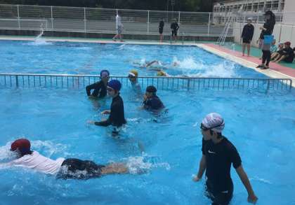 小学校生活最後のプール学習が行われました。子どもたちはコースに分かれて、それぞれの泳力を確かめながら、自分の成長を感じている様子が見られました。