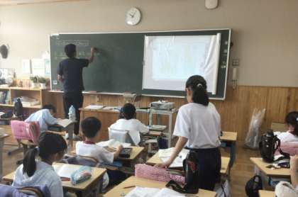 算数「表とグラフ」の学習の様子です。子どもたちは、同じ表題でも形が異なる2種類のグラフを比較しながら、それぞれの特徴や工夫について考えていました。