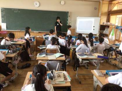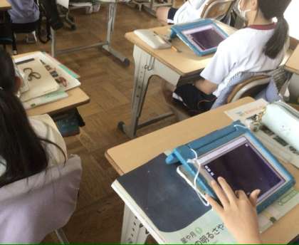 理科「星や月」の授業の様子です。教科書に掲載されている2次元コードを読み取ると、特別なカメラで撮影した夜空の画像が見られる仕組みになっています。その方法を全体の前で代表の子が説明していました。夏の大三角形を見つけることもできるとのことです。ぜひ夏休みに、実際の夜空を見上げて、本物の星々を探してみてください。