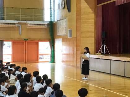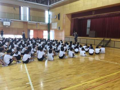 7/18 全校集会 公開日 2025/07/22 更新日 2025/07/22 校長室から 夏休み前の全校集会を実施しました。 子どもたちには、それぞれ目標を立て、普段挑戦できないことに取り組む大切さを話しました。また、担当の先生より生活、安全、健康に関する話もしました。 安全で楽しい夏休みを過ごしてほしいです。そして、9月には、元気な子どもたちに再会できることを楽しみにしています。 1年 2年 3年 4年 5年 6年