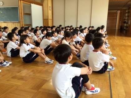 夏休み前の学年集会を行いました。3年生になって頑張ったこと、夏休みに気を付けることなど、学年全体で話を聞きました。聞く態度も立派です。