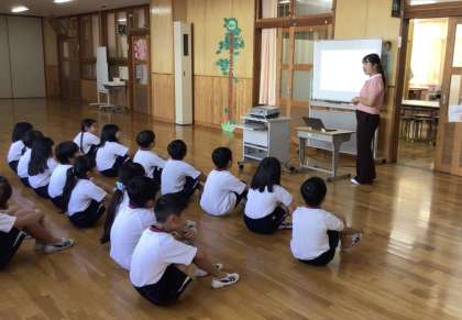 9月2日から、学級ごとに身体計測を行っています。計測の前には、養護教諭によるミニ保健指導があり、今回は「けが」についてのお話でした。本日計測の2年生の子どもたちは、真剣な表情で話を聞いていました。