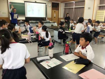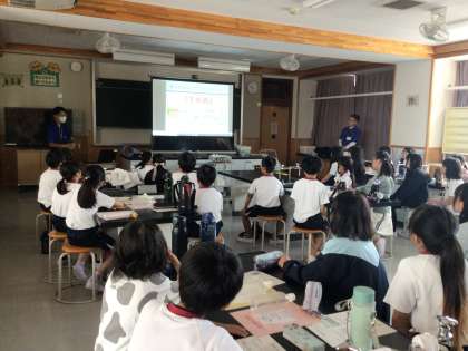 総合的な学習の時間に、上下水道局の方を講師にお招きし、下水道のしくみや役割について教えていただきました。実験を交えながら、下水道がどのように私たちの生活を支えているのか、そして正しい使い方について、わかりやすく説明してくださいました。講師の方からは、「下水道にとって一番の敵は、油です」とのお話があり、子どもたちは真剣に聞いていました。