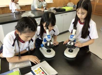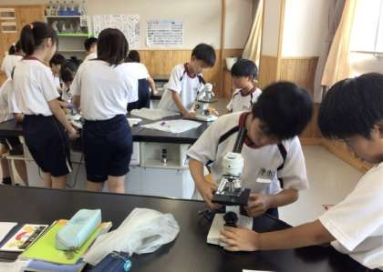 理科の学習で顕微鏡を使って花粉を観察しました。 見た目ではわからない花粉の色や形も、顕微鏡を使うことでくわしく見ることができました。