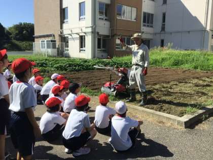 秋の種まきを前に、学年花壇の畑整備にボランティアさんが来てくださいました。肥料を入れ、耕運機で丁寧に畑を耕していただきました。5年生はその作業の様子を見学し、事前準備の大切さについて学ぶことができました。ボランティアの皆さんへの感謝の気持ちを忘れず、これからの栽培活動に取り組んでいきます。