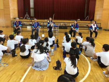 芳泉会の方を講師にお迎えし、三味線体験教室を行いました。三味線の構え方やバチの使い方など、丁寧に教えていただきました。子どもたちは「きらきら星」の演奏にも挑戦し、初めての三味線にわくわくしながら取り組んでいました。日本の伝統文化にふれる、貴重な時間となりました。