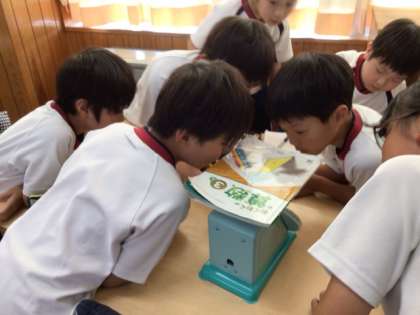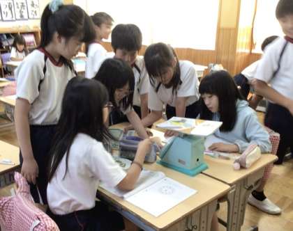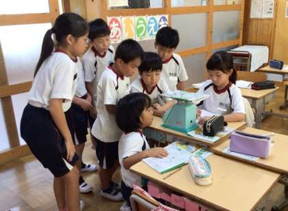 算数の授業では、「重さ」について学習しました。教科書で「はかりの使い方」を確認したあと、実際に教科書の重さやノートなどをはかってみました。子どもたちは、はかりの目盛りをじっくり見ながら、重さのしくみに興味をもって取り組んでいました。