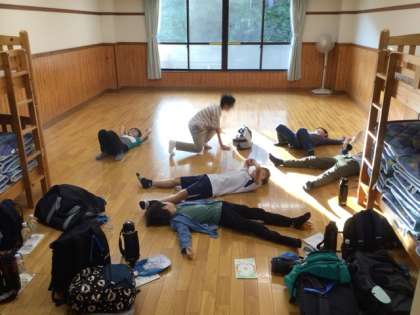 楽しかったキャンプファイヤーの後は、自然の家でお風呂に入り、ゆったりとした時間を過ごしました。部屋も広く思わず寝転んでしまうほどです。