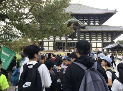 東大寺に到着しました。 境内には、修学旅行生や観光客の方々が多く訪れており、にぎやかな雰囲気の中での見学となりました。