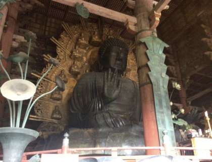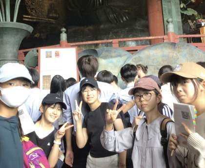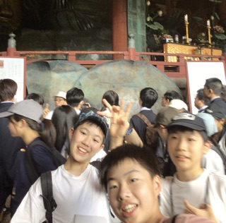 東大寺では、奈良の大仏を間近で見学しました。 その圧倒的な大きさに、子どもたちは驚きの声をあげ、感動の様子が見られました。