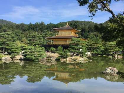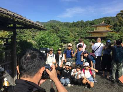 朝の澄んだ空気の中、金閣寺に到着しました。目の前に広がる金閣寺の輝く姿に、子どもたちは「きらきらしてる」と感動の声をあげていました。