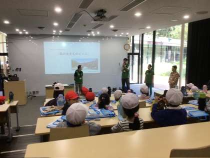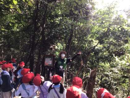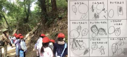 バスに乗って、自然観察の森へ出かけました。「森のビンゴ」をしながらいろいろな植物をじっくり観察しました。ムササビが食べたどんぐりも見せてもらい、みんなびっくりしたようです。自然の中で楽しく活動することができました。