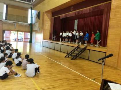 前期終業式は出張で不在のため、本日行われた児童集会で、子どもたちの頑張りについてメッセージを伝えました。話の内容は、どの学年も前向きに取り組んでいてとても感心したこと 、「まごころ」の気持ちをもって行動できていたことが素晴らしかったことについてです。後期は、新しい目標を立てて、さらに成長していってほしいと思います。