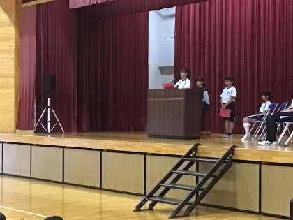 前期に頑張ったことと後期に頑張りたいことについて、2、4、6年生の代表が作文発表をしました。5人とも堂々と素敵な発表ができました。