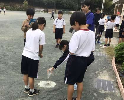 理科の授業では、「水蒸気が空気中に含まれているか」を課題に学習を進めました。子どもたちは保冷剤を使いながら、空気中の水蒸気の有無を調べる実験に取り組みました。