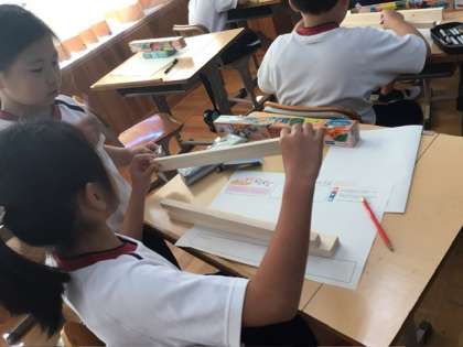 図画工作科「のこぎりギコギコ」の単元に入りました。のこぎりを使って木を切り、組み合わせたりつないだりしながら、オリジナルの作品づくりに挑戦します。実際に木材を手に取り、どんな形にしたいか、どんな作品に仕上げたいかを考えていました。