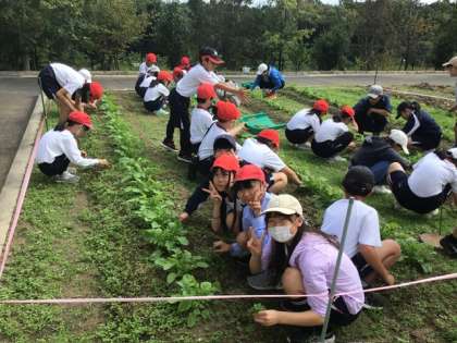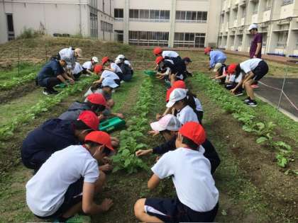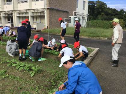 休み時間に、学年で育てている大根の畑で、間引き作業と草とりを行いました。大根は元気にすくすく育っていて、これからの成長がとても楽しみです。