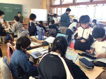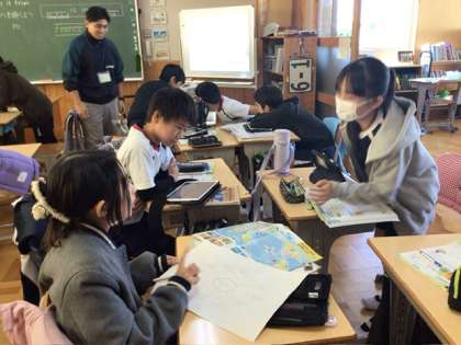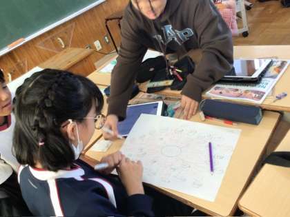 外国語の授業では、「Where is it from?」という単元に取り組んでいます。 子どもたちは、スポーツや食べ物など身近なテーマを選び、それらがどの国に由来するのかを調べながら、世界とのつながりについて考えを深めています。