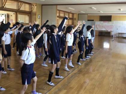 子どもたちは、音楽に合わせて体を動かしながら、楽しそうに踊っていました。運動会では何曲か披露する予定なので、これからの練習も楽しみです。