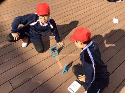 理科の授業で「太陽の光」単元の導入として、鏡を使って日光を反射させ、的に当てる実験を行いました。光の性質を体感しながら、楽しんで取り組む姿が見られました。