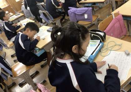国語の授業では、はがきの書き方を学びました。今回は、運動会の案内を保護者の方に向けて書く活動に取り組みました。前文・本文・末文の構成を意識しながら、丁寧に書いていました。