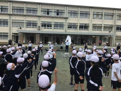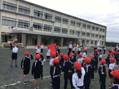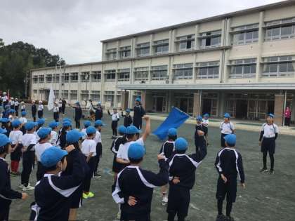 運動会に向けて、全校で開会式・閉会式・応援の練習を行いました。6年生が中心となって、全校をリードしてくれました。
