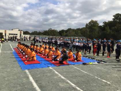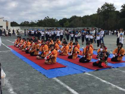 浄水音頭の様子です。全校、保護者、地域の皆様と踊りました。