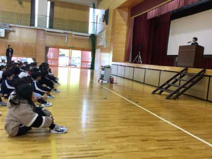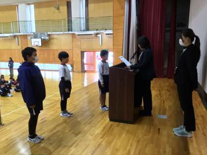 児童集会が行われました。表彰のあと、青少年赤十字リーダーシップ研修として夏休みに参加した児童の発表がありました。続いて、まごころ委員会・環境委員会・体育委員会・企画委員会による提案やお楽しみの活動が行われ、全校児童が充実した時間を過ごしました。