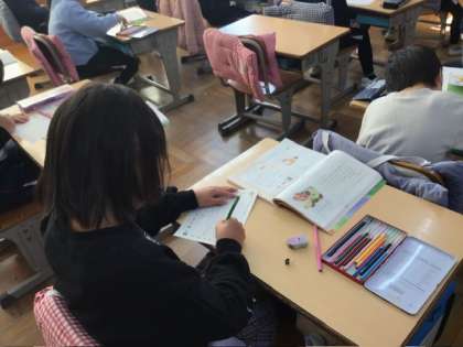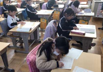 国語科「ありがとうをつたえよう」の学習で、町探検でお世話になったボランティアの方へお礼の手紙を書きました。子どもたちは、感謝の気持ちがしっかりと伝わるように、一文字一文字を丁寧に書いていました。