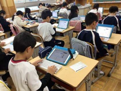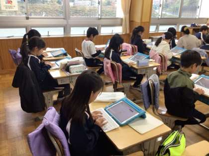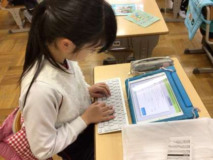国語の時間に、キーボードを使ってローマ字入力の練習をしました。ローマ字の復習をしながら、キーの位置を確認して取り組みました。