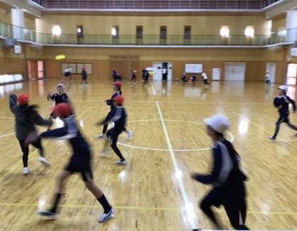 体育の授業では、アルティメットの学習に取り組みました。ゲームを重ねるごとに、子どもたちは空いたスペースに走り込んだり、遠くまでパスをつないだりすることが上手になってきました。