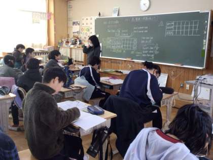 算数の授業では、変化する2つの数量を表にまとめ、その和に着目して変わり方のきまりを見つけ、問題を解きました。表に整理することで、きまりを見つけやすくなり、数の関係を理解することができました。