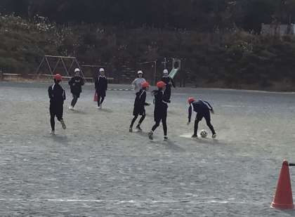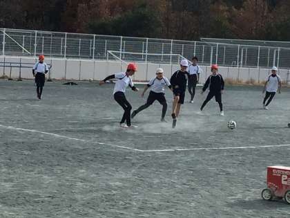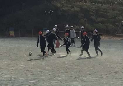 体育の学習でサッカーに取り組みました。子どもたちは声を掛け合いながらパスをつなぎ、仲間と協力してプレーしていました。