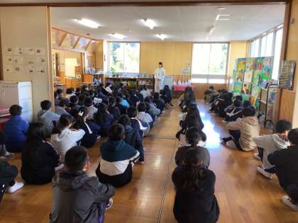 頑張ったまごころ発表会をねぎらい、次の目標を確認する集会を行いました。最高学年としての自覚をもち、下級生に頼もしい姿を示してくれています。