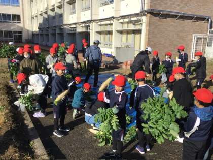 畑ボランティアの皆さまにご協力いただき、学校の畑で育ててきた大根の収穫を行いました。どれも大きく立派に育ち、子どもたちも驚くほどの出来ばえでした。収穫した大根のうち、学校で使用する分は再び土に戻して保存し、なわとび大会で使用する予定です。ご協力いただいた皆さま、ありがとうございました。