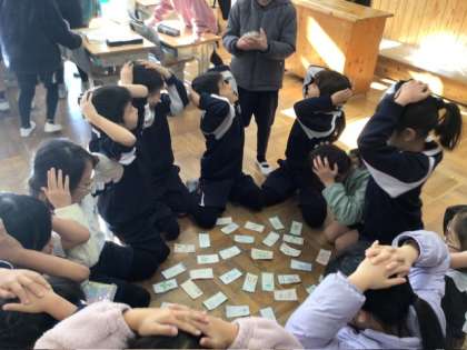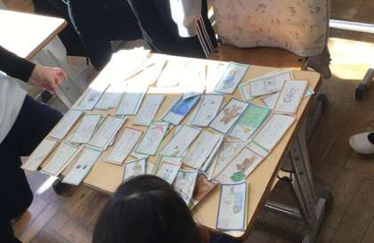 国語の学んだ「いろはがるた」を、子どもたち自身の手でオリジナル作品として完成させました。 今日は、そのかるたを使って、みんなで楽しくかるた取りを行いました。