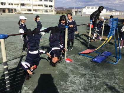 体育の時間に、鉄棒に挑戦しました。足をかけて回る技に挑戦したり、ぶら下がる練習をしたりと、それぞれが自分の目標に向かって一生懸命取り組む姿が見られました。