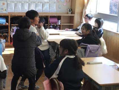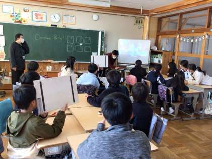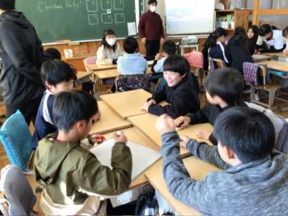 外国語の時間には、ALTが作成したクリスマスにちなんだクイズに挑戦しました。 英語での出題でしたが、写真や知っている単語を手がかりに、グループで相談しながら答えを導き出していました。正解が発表されると、思わず歓声が上がるほど盛り上がり、楽しそうに学んでいました。