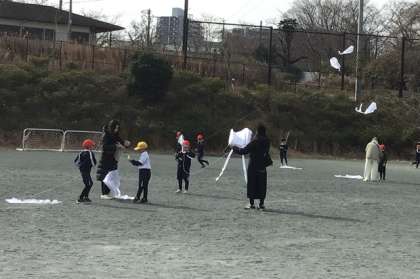 生活科「ふゆだいすき」で、凧あげ遊びをしました。天気は良かったものの風は弱めでしたが、子どもたちは運動場を元気いっぱい走り回り、楽しそうに凧をあげていました。ボランティアの皆さまには、糸が絡まった際の対応や凧をあげるときのサポートをしていただきました。おかげで子どもたちは安心して活動に取り組むことができました。ご協力ありがとうございました。