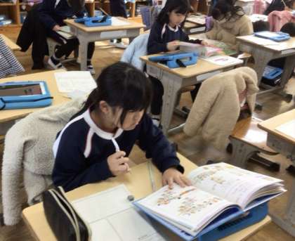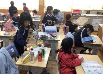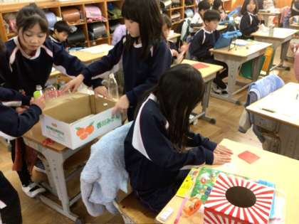 生活科「楽しさひろがれ わたしのおもちゃ」の学習の様子です。子どもたちは、1年生と交流するためのおもちゃづくりの計画を立てていました。計画後、作成に取り掛かっている子どもたちもいました。今後の活動が楽しみです。