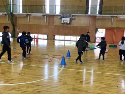 わくわく活動のスタンプラリーでは、5年生が中心となって教室や体育館を巡りました。6年生が工夫して企画してくれたゲームに挑戦し、達成するとスタンプの代わりにシールがもらえます。班の仲間と力を合わせて取り組む場面も多く、どの班も楽しそうに活動していました。