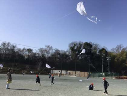 生活科「ふゆだいすき」で、凧あげ遊びの2回目を行いました。今日も天気に恵まれ、子どもたちは運動場を元気いっぱい走り回り、楽しそうに凧をあげていました。また、ボランティアの皆さまには、本日も温かいサポートをしていただきました。ご協力ありがとうございました。