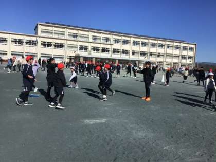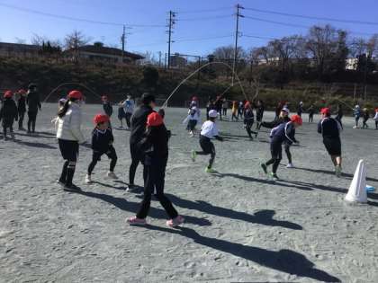 なかよしタイムの長縄とび練習の様子です。回を重ねるごとに跳べる回数が増え、子どもたちの成長がよく見られるようになってきました。寒い日ですが、どの子も元気いっぱいに取り組んでいます。