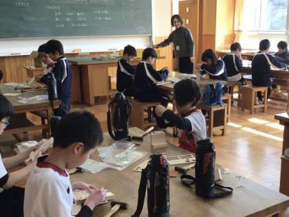 図画工作科「トントン どんどん くぎ打って」の学習に取り組みました。