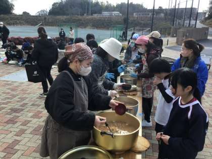 かまどでの大きな鍋の調理を、手際よく作業を進めてくださるボランティアの皆さまの姿から、日頃から多くの方々に支えていただいていることを改めて実感しました。