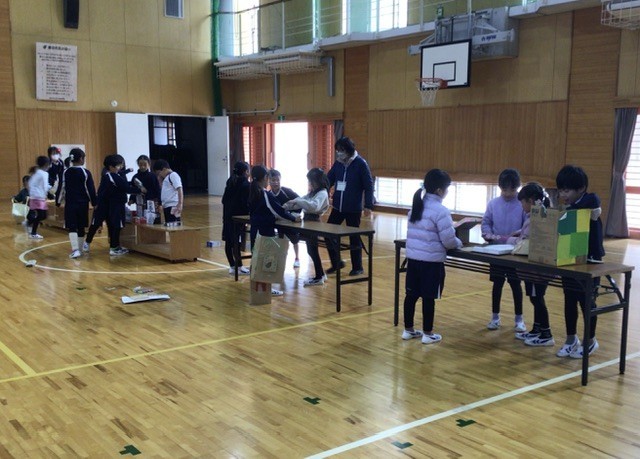 生活科では、1年生を招待する「おもちゃまつり」に向けて、体育館で場所の確認や案内の仕方を練習しました。どこで遊んでもらうか、どのように説明するかをグループで話し合いながら、実際に動いて確かめました。