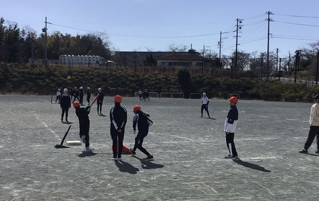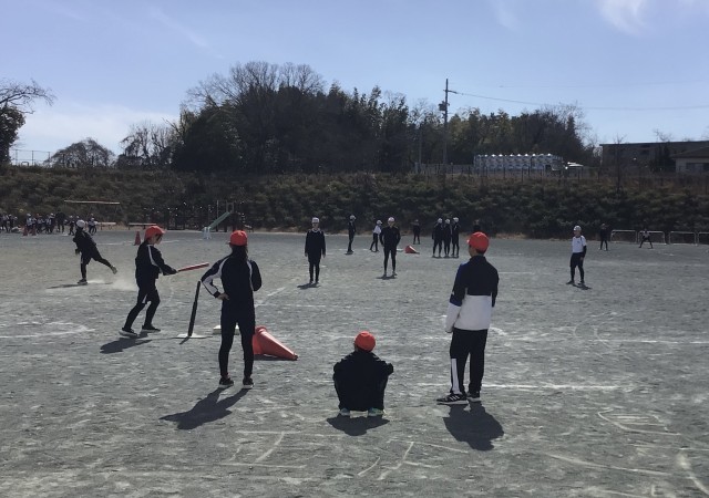 体育の授業で、ベースボール型ゲームの「ティーボール」に取り組みました。ゲームの基本的な進め方を知り、チームで協力しながら練習を重ねました。