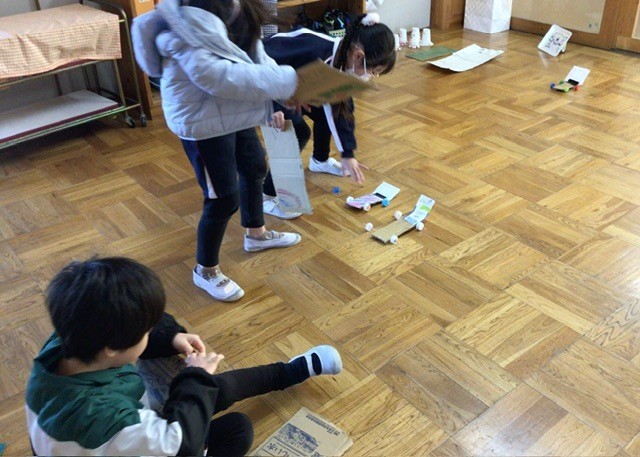 生活科の学習で、明日の学校公開日に向けて準備を進めました。子どもたちは、自分たちで考えた遊びを来てくれる人に楽しんでもらえるよう、遊び方の説明や動きの確認など、練習に一生懸命取り組みました。