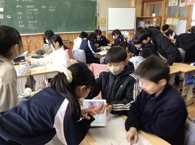 社会科の学習で、関東地方のまとめを行いました。「桃太郎電鉄(桃鉄)」のアプリを活用し、地名や特産物などをゲーム感覚で調べながら、グループで楽しく学習しました。