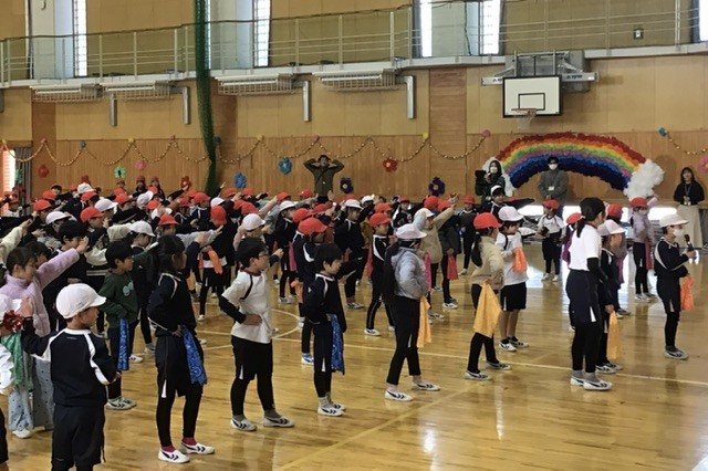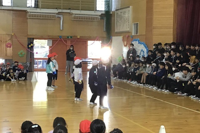 1・2年生の出しものとしてダンスが披露され、2年生は、6年生が2年生の時に踊った「スーパーマリオ」のダンスを元気いっぱいに踊りました。後半には6年生も加わり、会場が一体となって盛り上がる温かい時間になりました